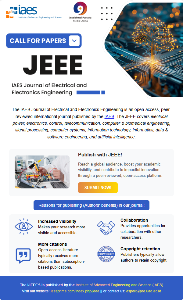 We invite researchers and professionals to explore the most recent calls for papers in the IAES Journal of Electrical and Electronics Engineering. Submit your manuscript via online Submissions.